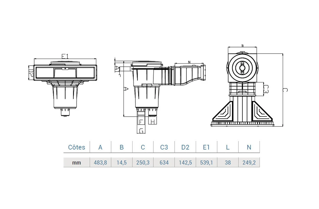 Een verhoging van het waterpeil met enkele centimeters geeft het zwembadproject een interessante meerwaarde. Deze skimmer maakt het mogelijk het waterpeil tot slechts 60 cm onder de rand te verhogen.