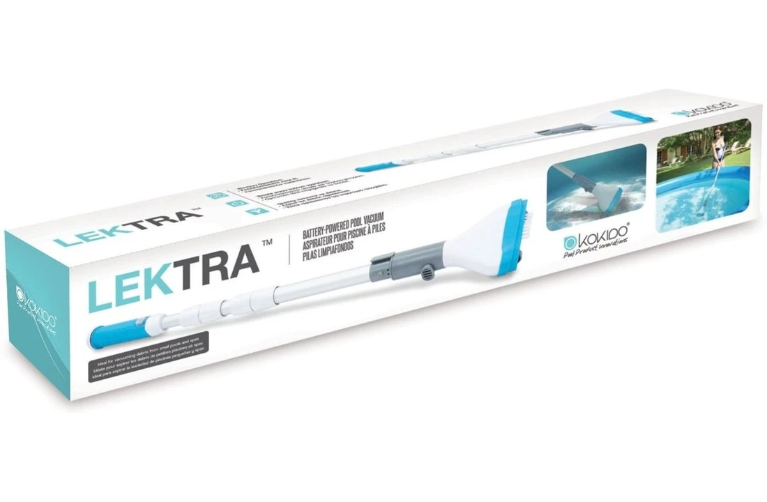 De Kokido Lektra zwembadstofzuiger is een elektrische reiniger voor spa’s en zwembaden die perfect werkt op 8-AA batterijen. De reiniger werkt op een interne zuigkracht, wat betekent dat je de zwembadpomp niet hoeft te koppelen.