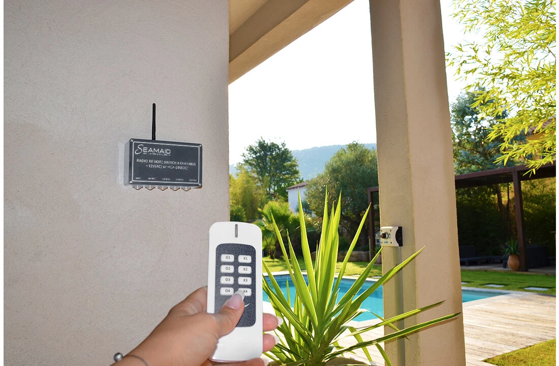 Deze draadloze ontvanger van Seamaid zorgt voor een gemakkelijke bediening van je ingebouwde zwembadverlichting. Deze op afstand bestuurbare schakelaar met afstandsbediening kan je zowel witte als kleuren lampen bedienen. Deze ontvanger is geschikt voor een maximum van 12 lampen met een totaal vermogen van maximaal 460 W. De ontvanger heeft 4 ingebouwde kanalen. Hiermee kan je 4 verschillende groepen van lampen maken.