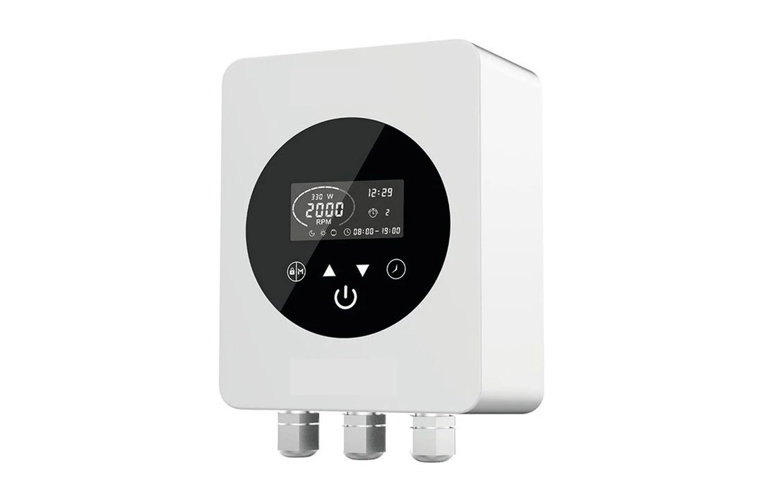 Een Frequency Inverter kan de frequentie van wisselstroom omzetten in een andere frequentie waarbij de snelheid van een (pomp)motor kan worden veranderd. De meeste zwembadpompen die momenteel draaien in de markt hebben maar 1 snelheid en zijn vaak krachtig om zware taken, zoals backwashen, uit te kunnen voeren. Voor het filteren is deze kracht echter niet nodig! Dankzij de frequentieregelaar kan je de pomp nu naar wens instellen (zelfs tot 4 verschillende tijdzones per dag!). Met keuze uit 35 verschillende snelheden kan je jouw voordeel halen uit verschillende verbruikstarieven op verschillende tijden per dag en hoeft u zich geen zorgen meer te maken over het geluid van de pomp.
